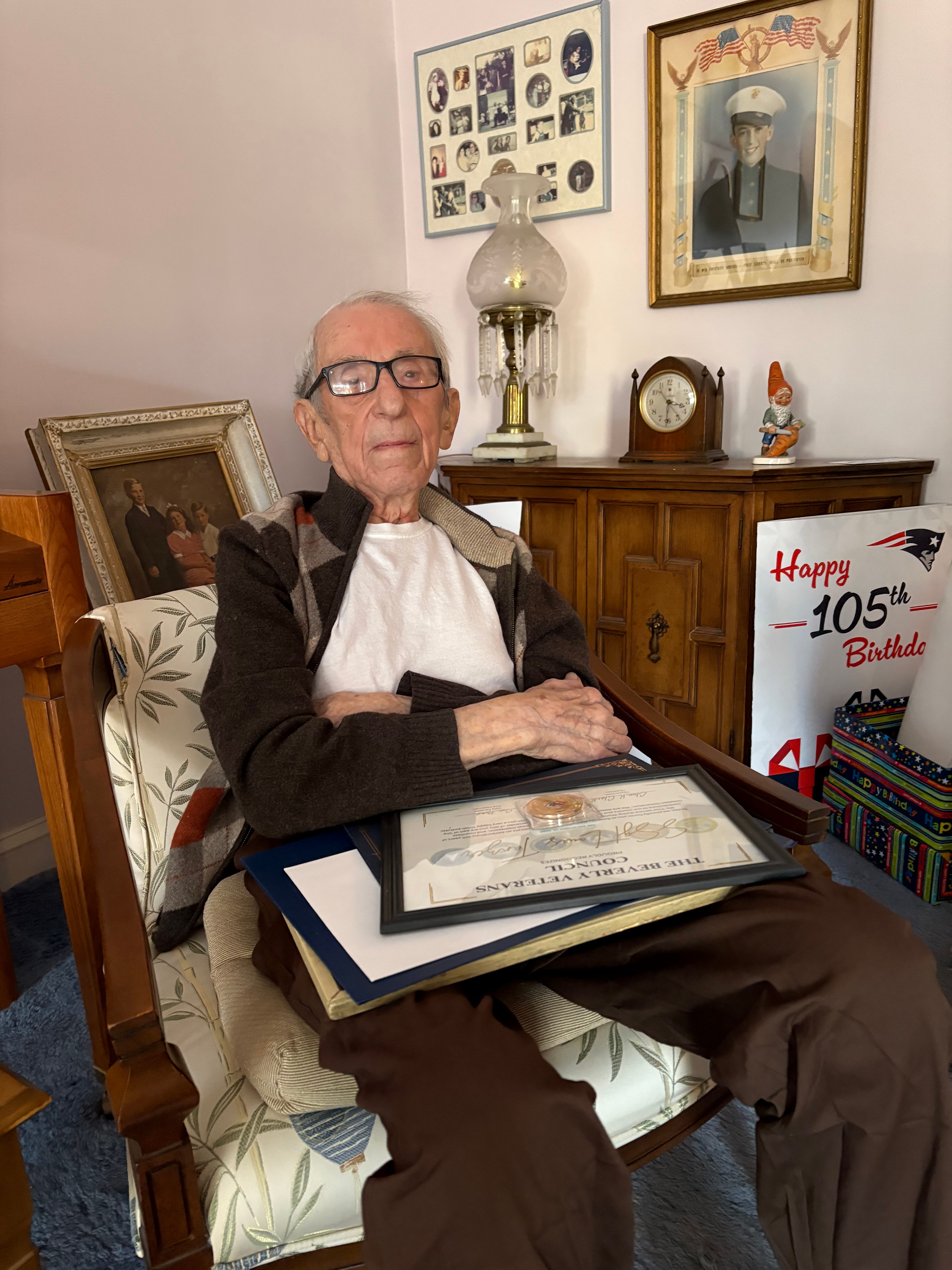 On Christmas Day, at 6:03 p.m., I got an email about a birthday celebration for Louis Tanzer of Beverly. Mr. Tanzer turned 105 on Christmas Day, reason enough for a big bash. But he also happens to be the city’s oldest living veteran, maybe the state’s oldest living veteran. So I thought, time to put off vacation for one more day.